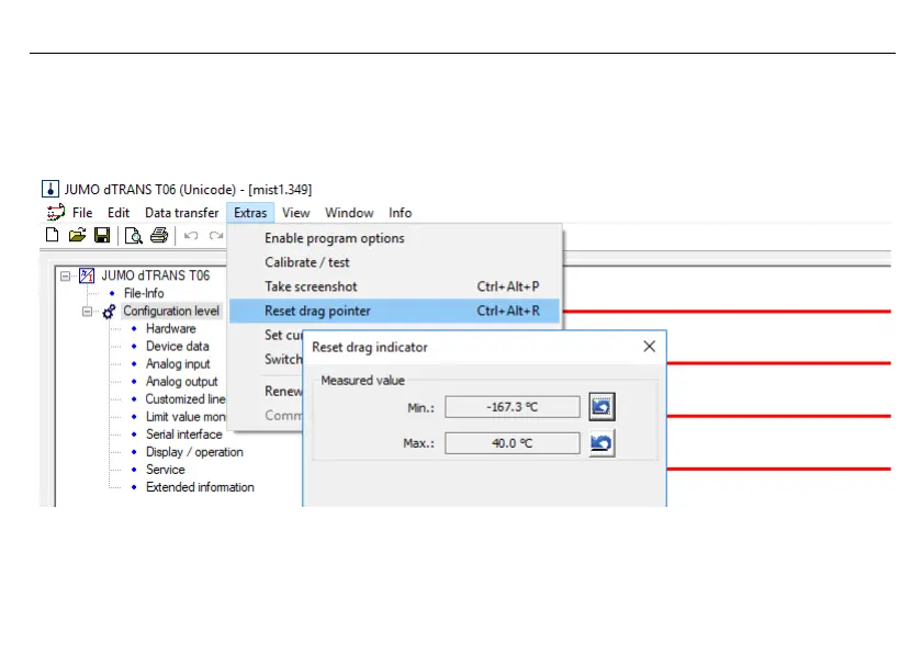 The drag indicator shows the maximum and minimum measured value. It can be reset with the setup program. The measured