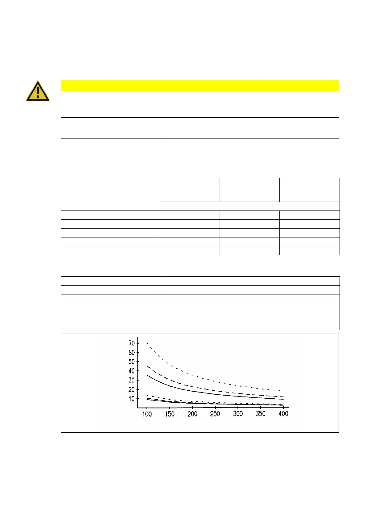 Permissible incident flow velocity [m/s] at the maximum permissible pressure loading and differ-