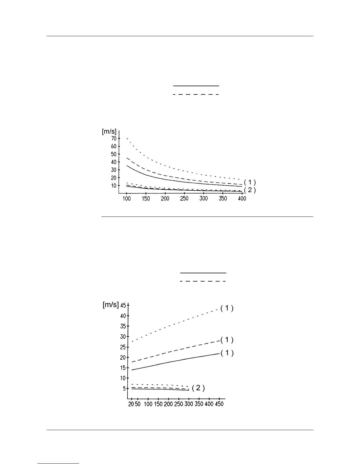 Permissible flow rate [m/s] at maximum admissible pressure load and different