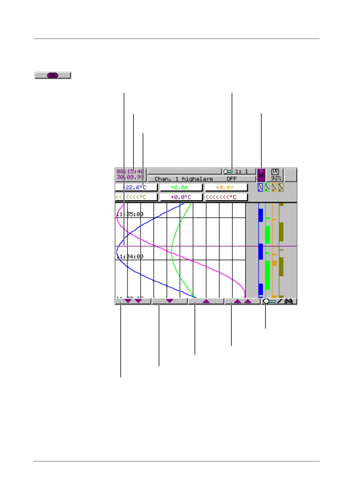 Using these softkeys, the measurement data display can be scrolled (shifted)