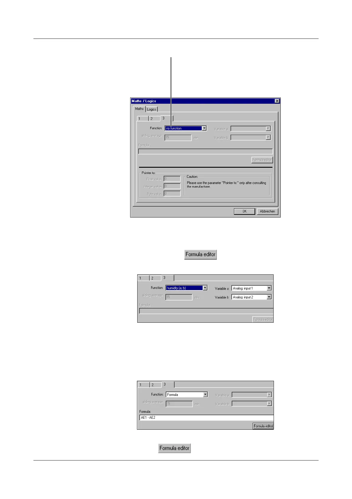 If the “Formula” function has been selected, the input field “Formula” must be edited.