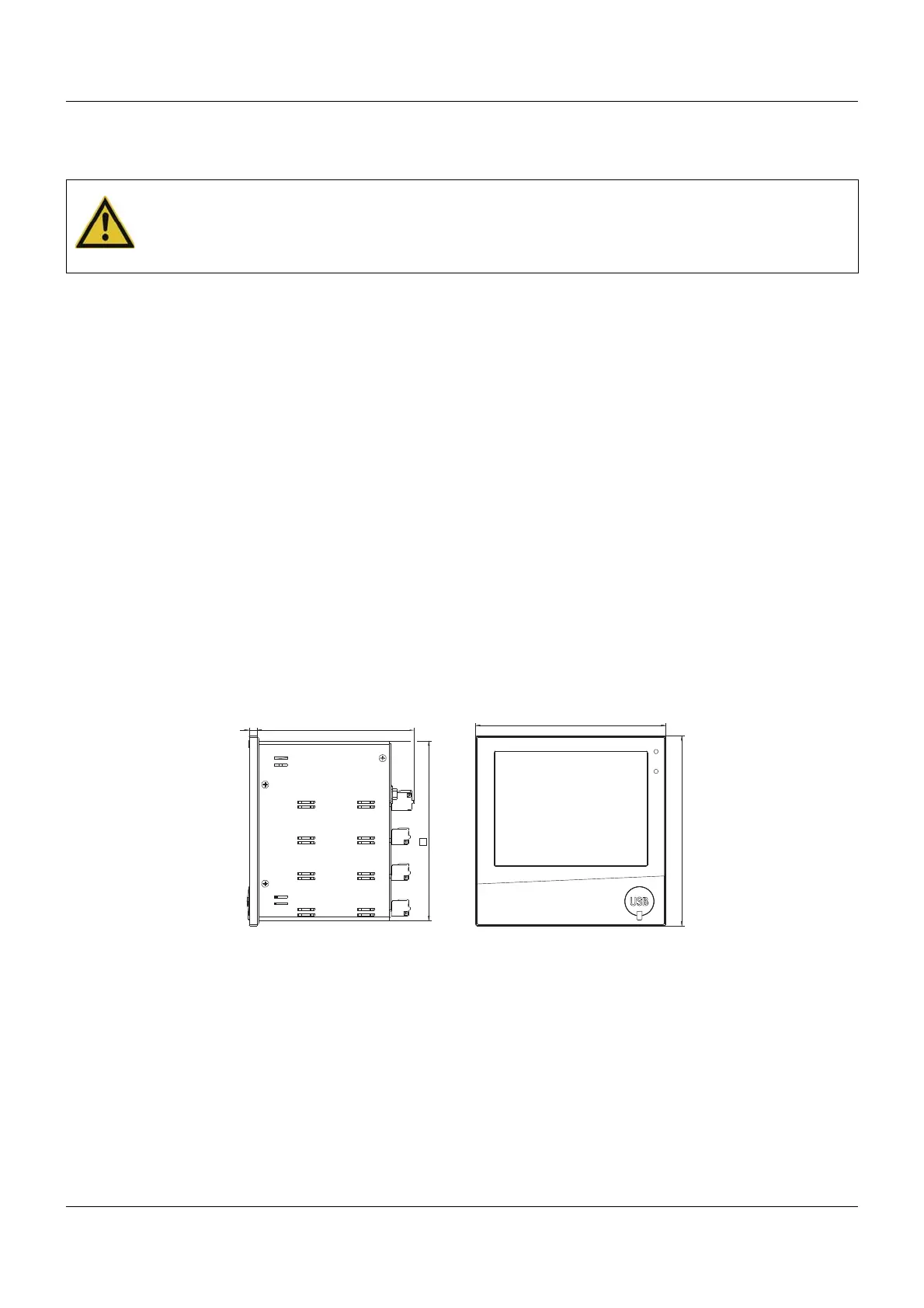 The device is designed for installation in a panel cut-out. The front of the device and housing