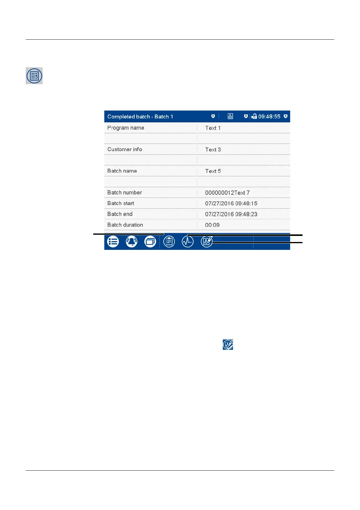 This function displays the report for the completed batch recording. Recorded data can be