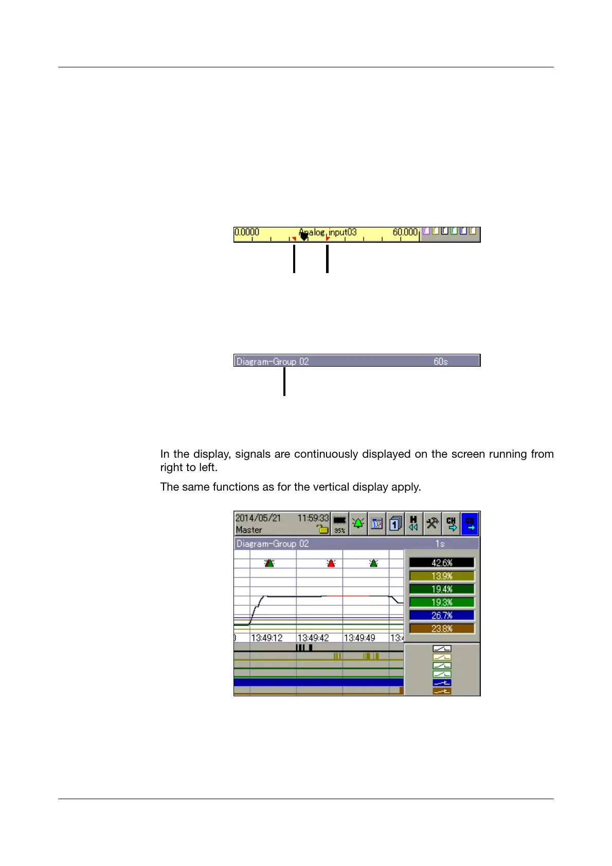 In the display, signals are continuously displayed on the screen running from