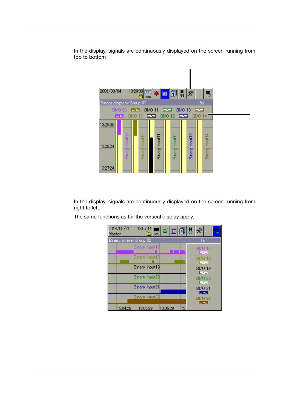In the display, signals are continuously displayed on the screen running from