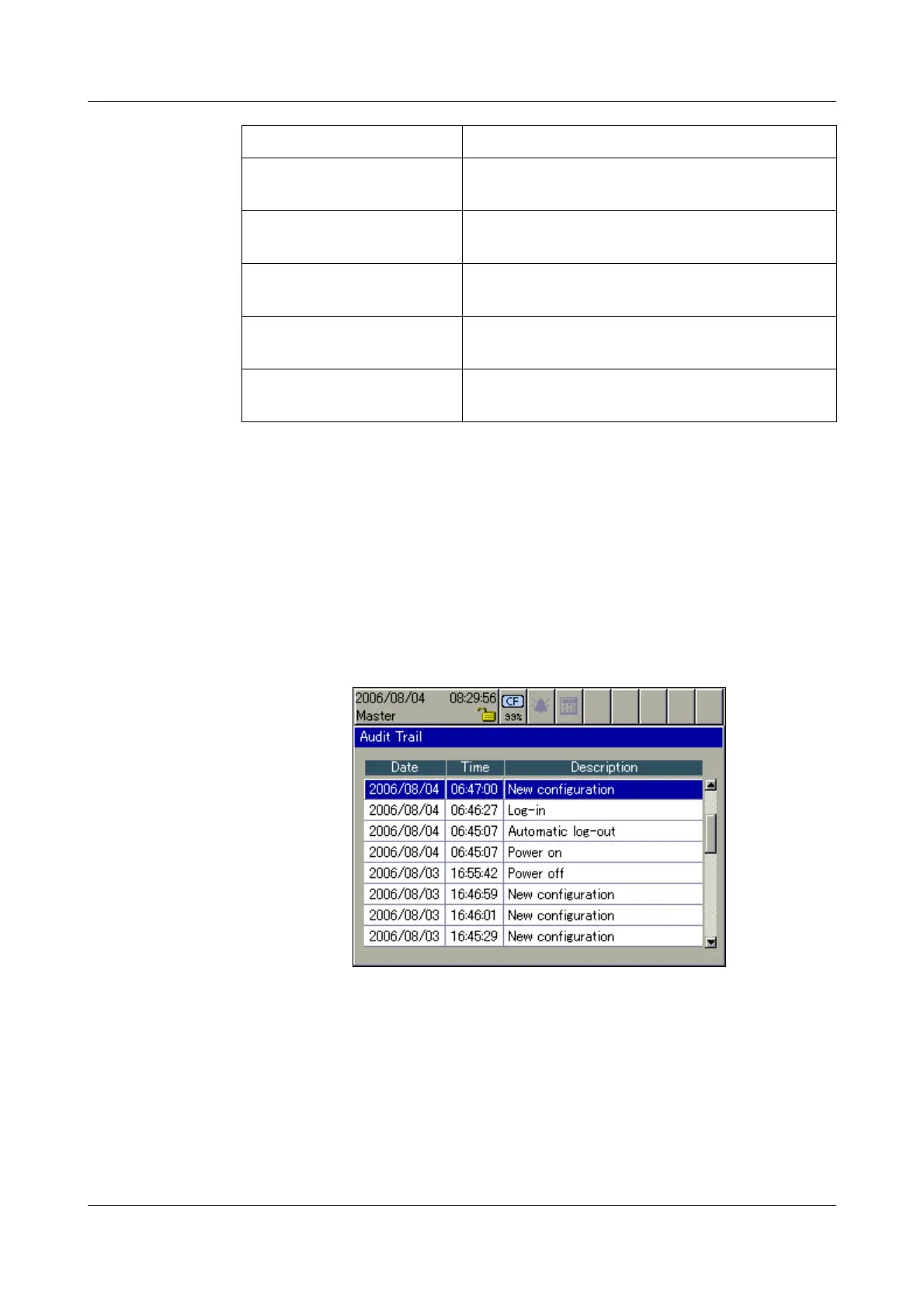The audit trail contains a log of all user actions on the recorder.
