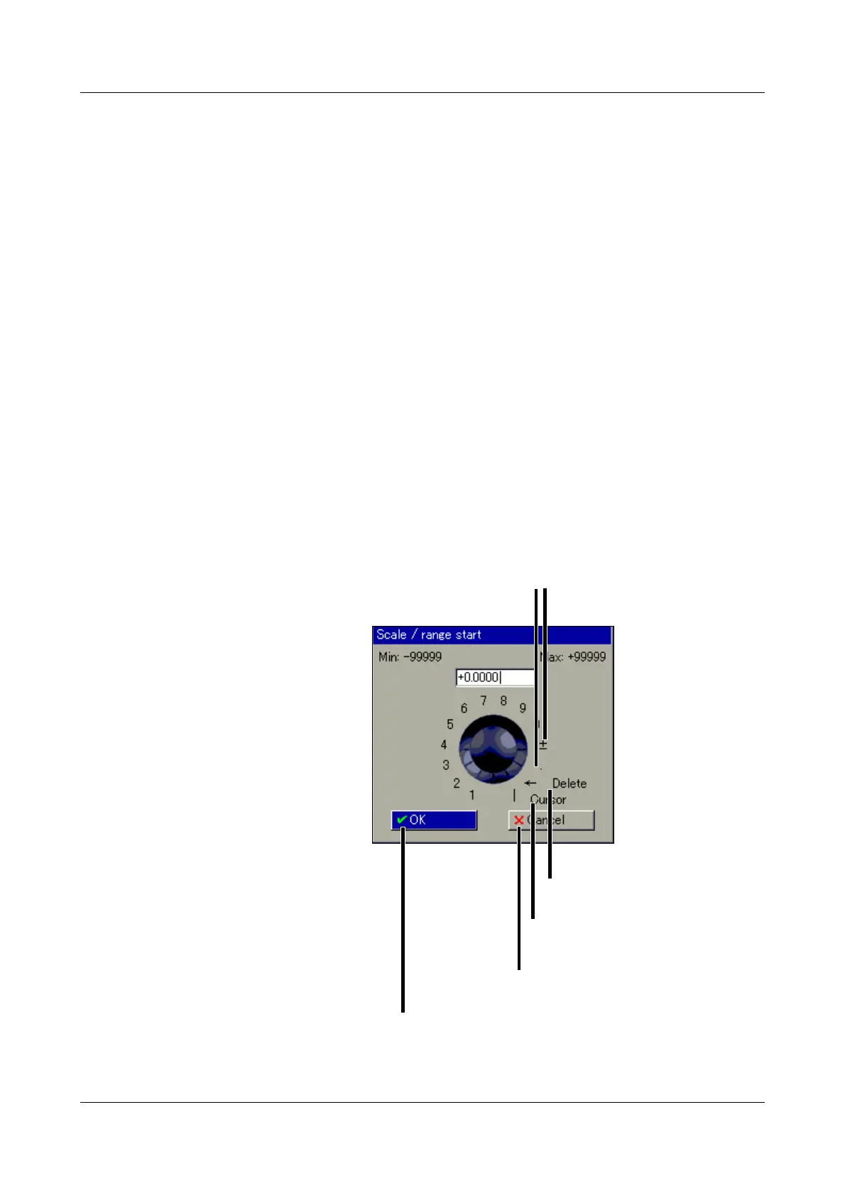 tens, etc.), the decimal point position, and the sign are selected with the