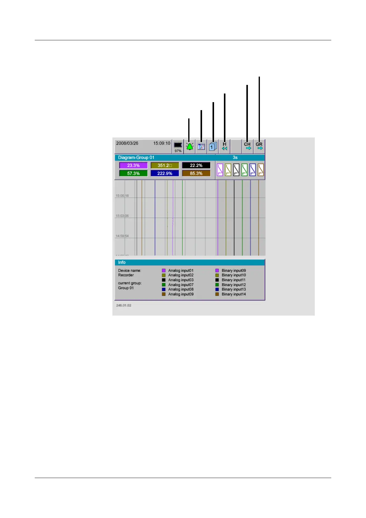 Data that are displayed correspond to the configured groups of the recorder.