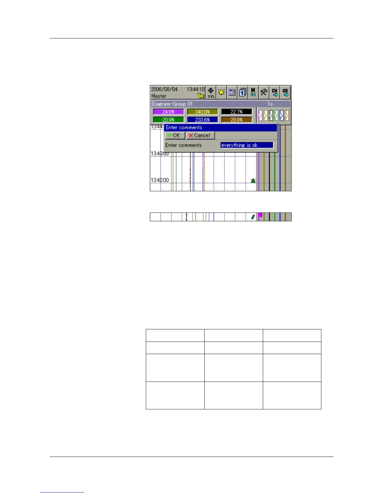 In the curve presentation (in the displayed group), the text entry is marked by a