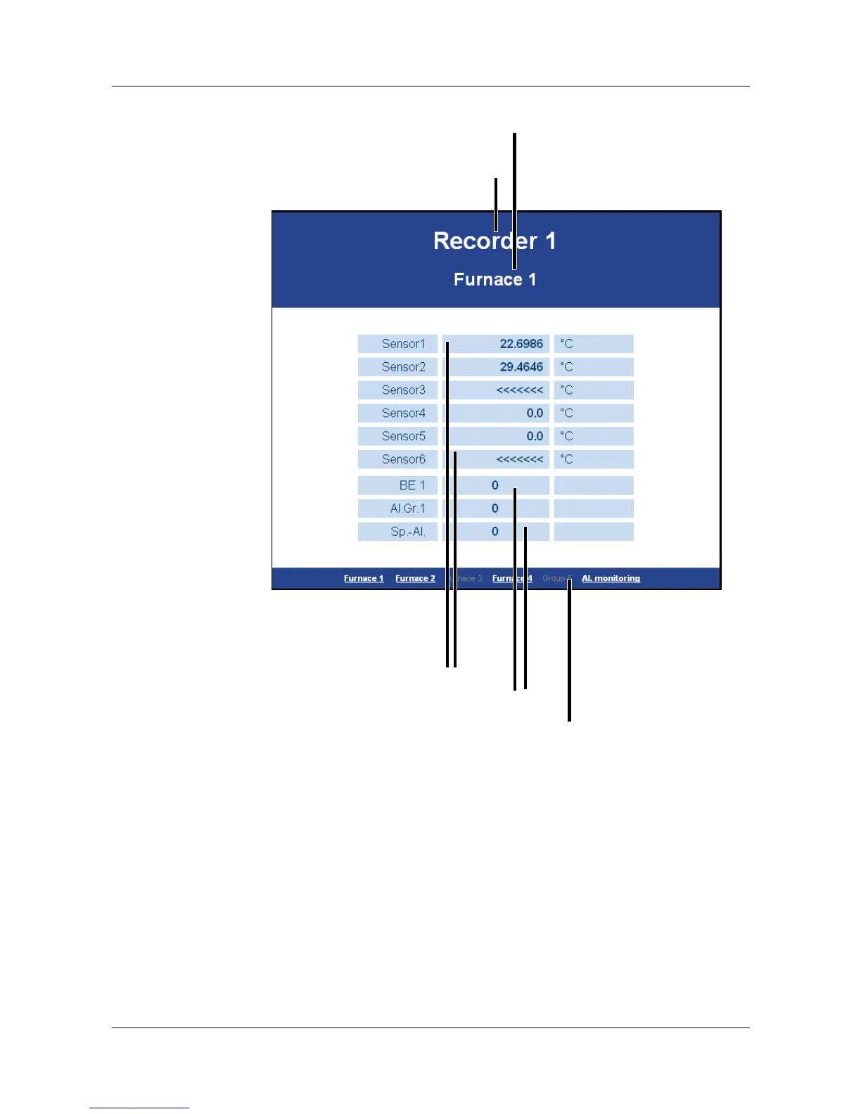 Group alarms (limit exceedings) are signaled by a color switch (red) of the