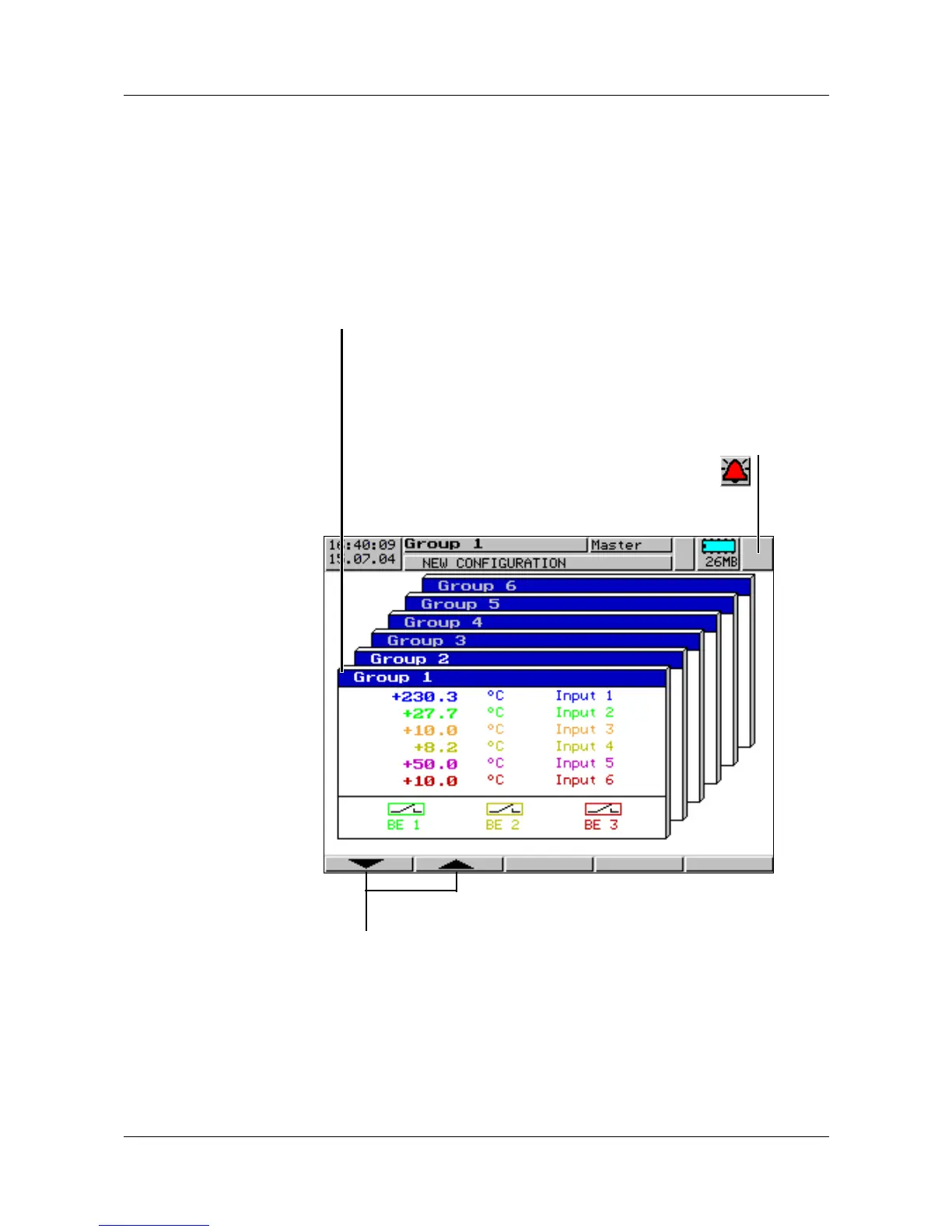 If an alarm is present within a group, the alarm bell is