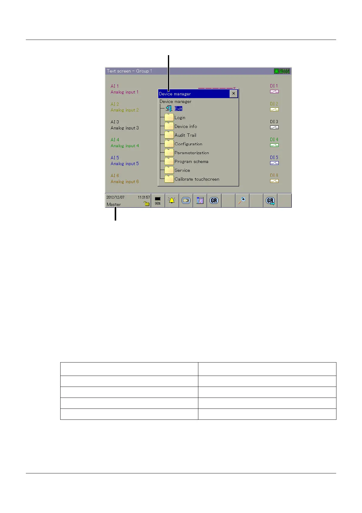 (1) Device manager functions (2) Name of logged on user