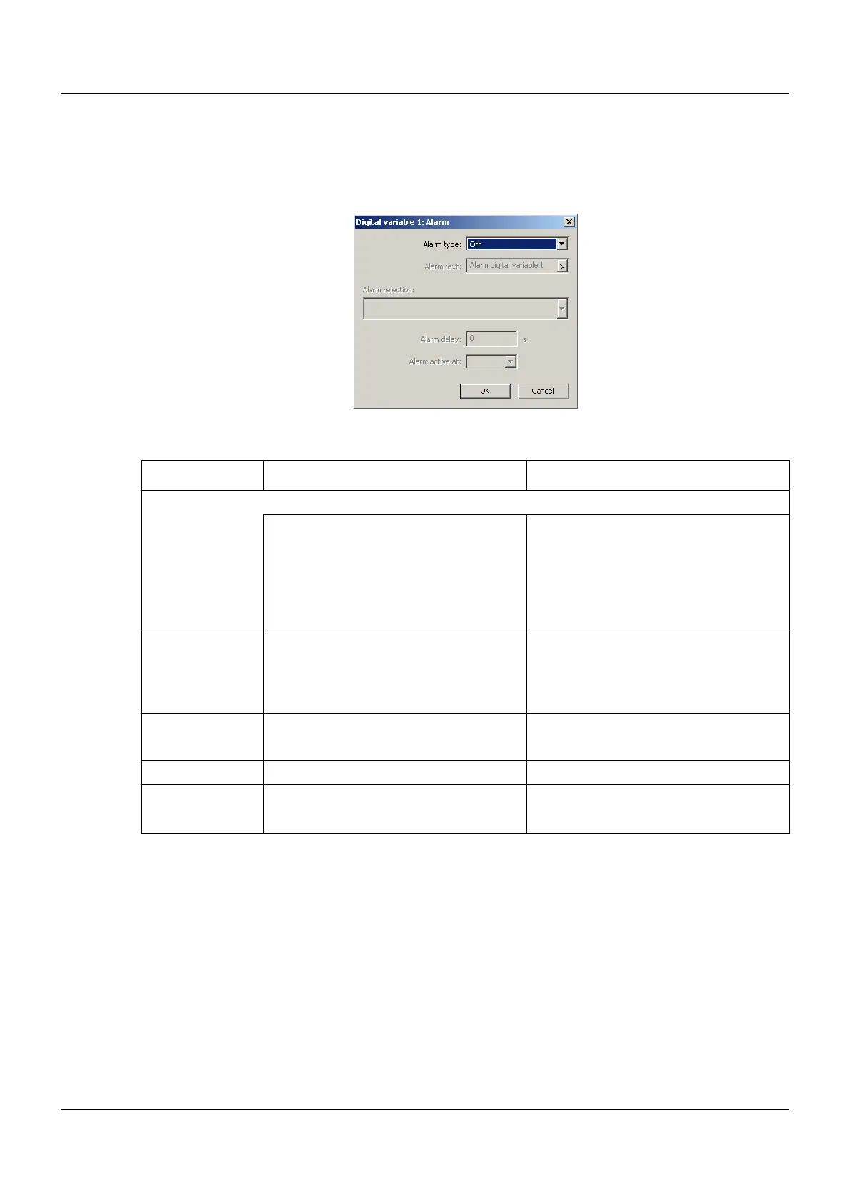 Alarm text Use default text or enter other text. Text that is displayed or entered in the