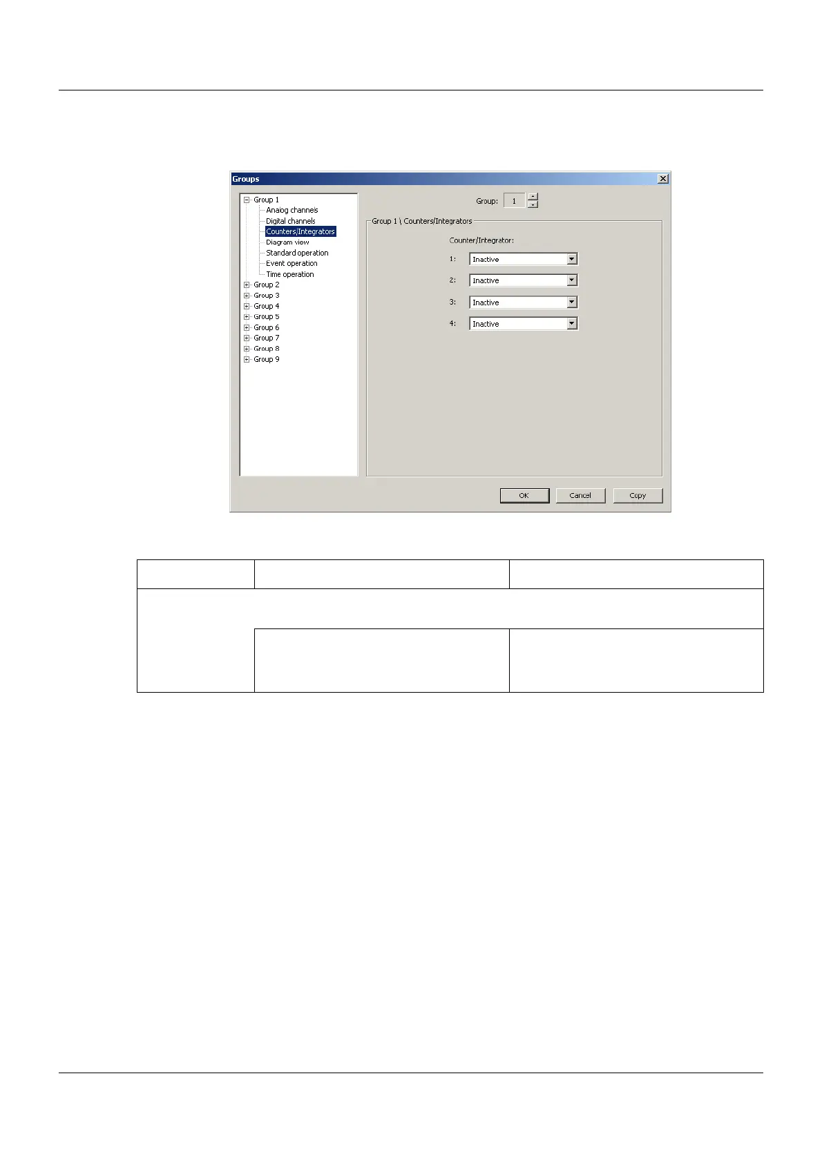 group. The allocation of the counters to a group means that counter alarms and integrator