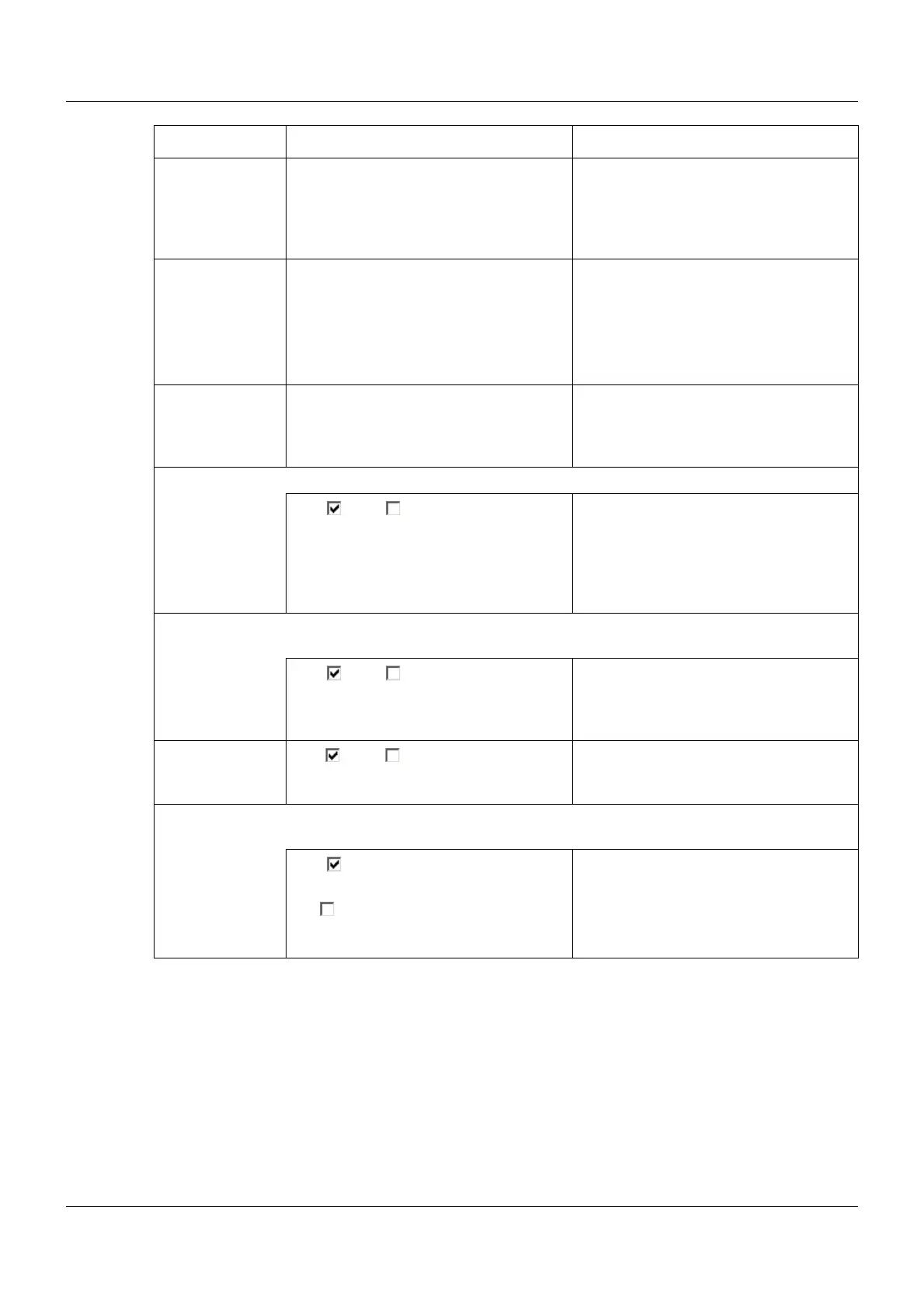 Parameter Selection/settings Description