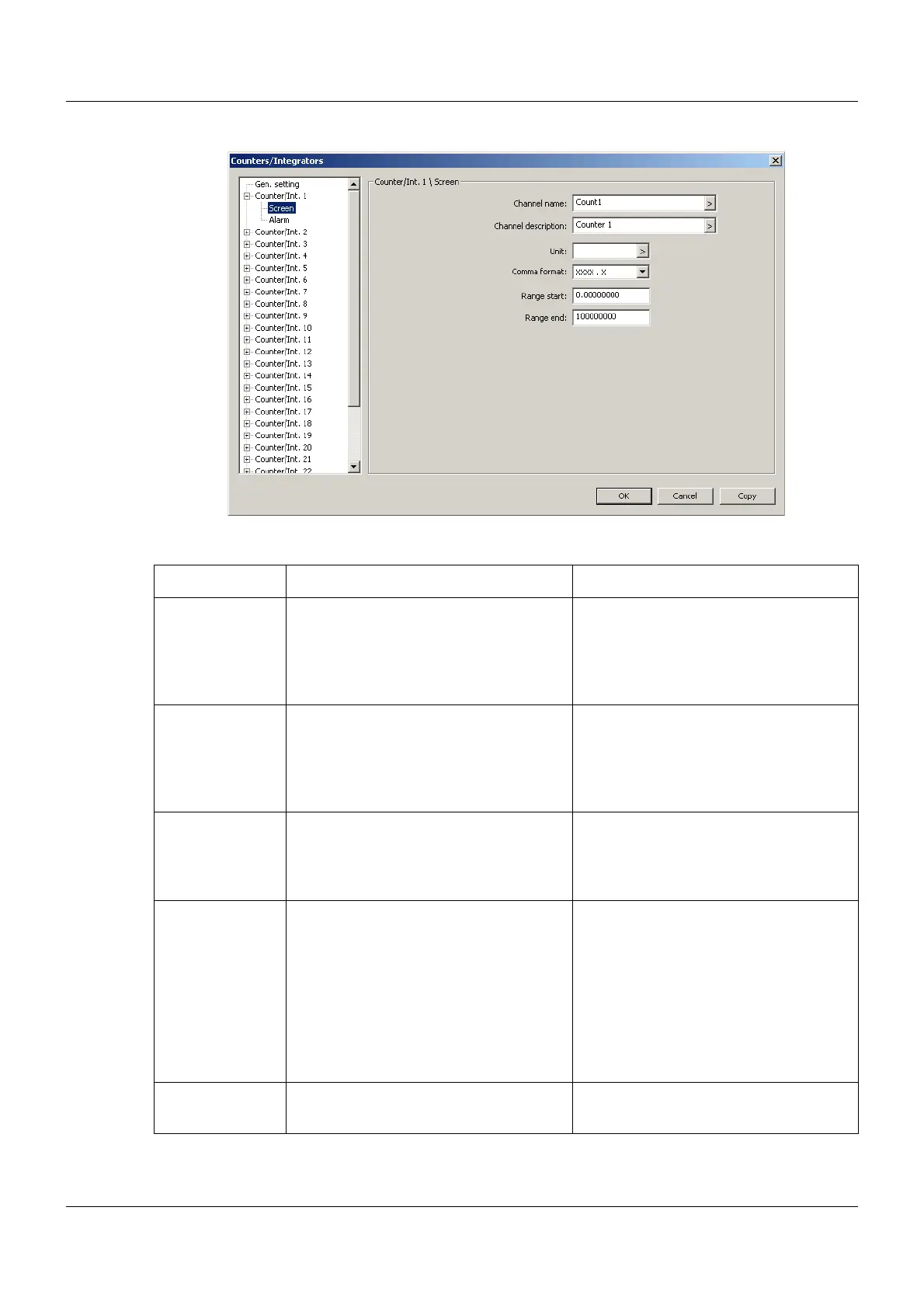 Setup dialog – Counter/Int. 1 to 27 – Screen