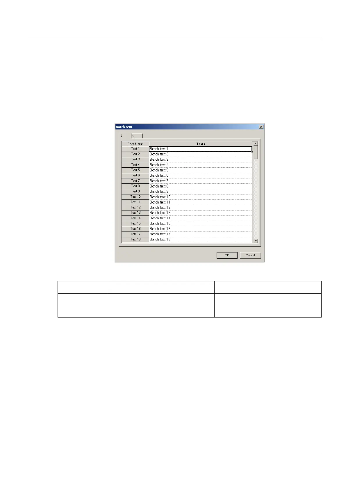 A batch text is used when configuring the batch info, either via direct selection from the text list