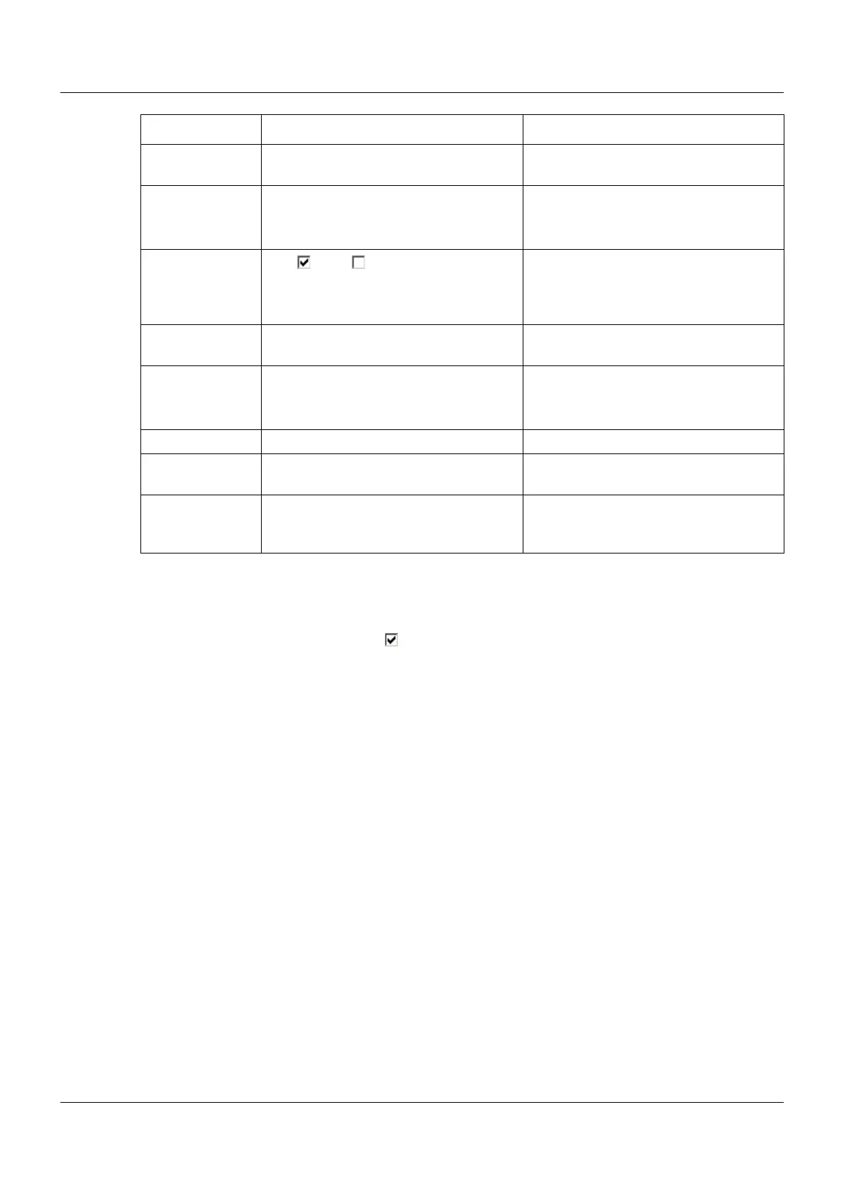 Parameter Selection/settings Description