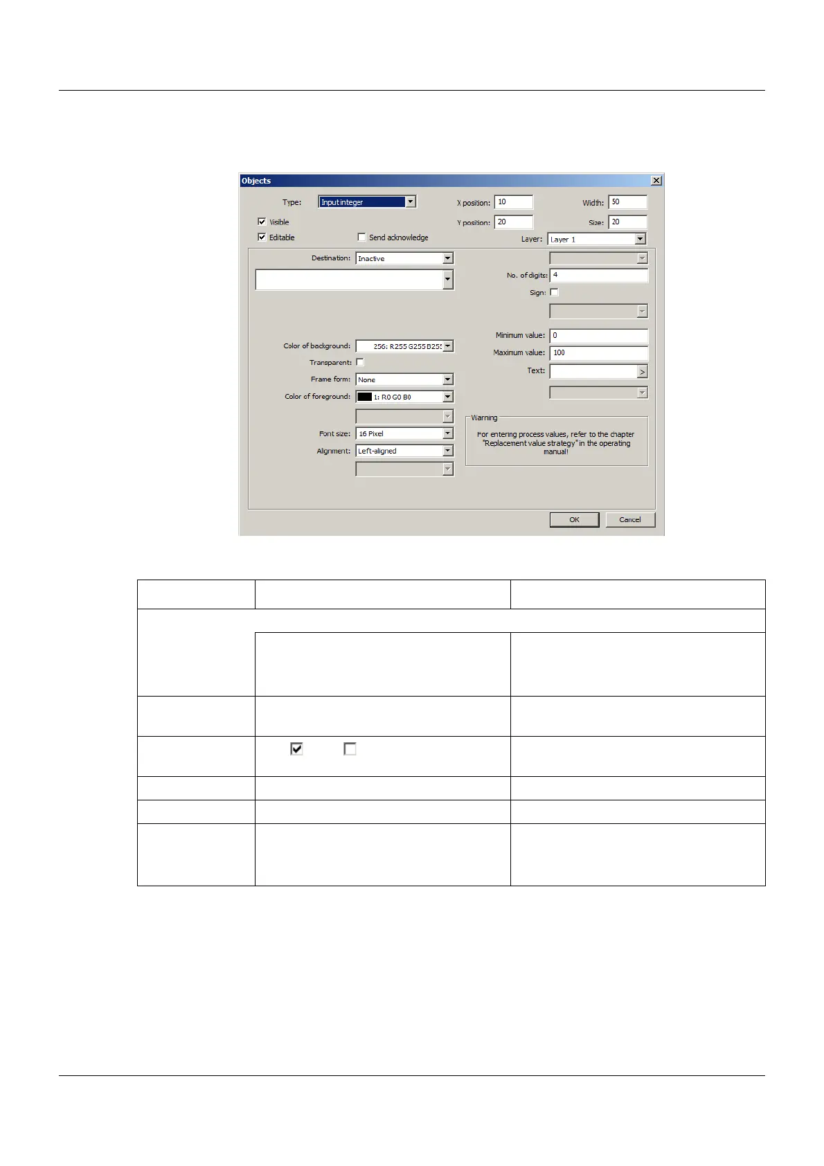 Minimum value Enter value (-99999 to +99999). Lower limit of the admissible input range