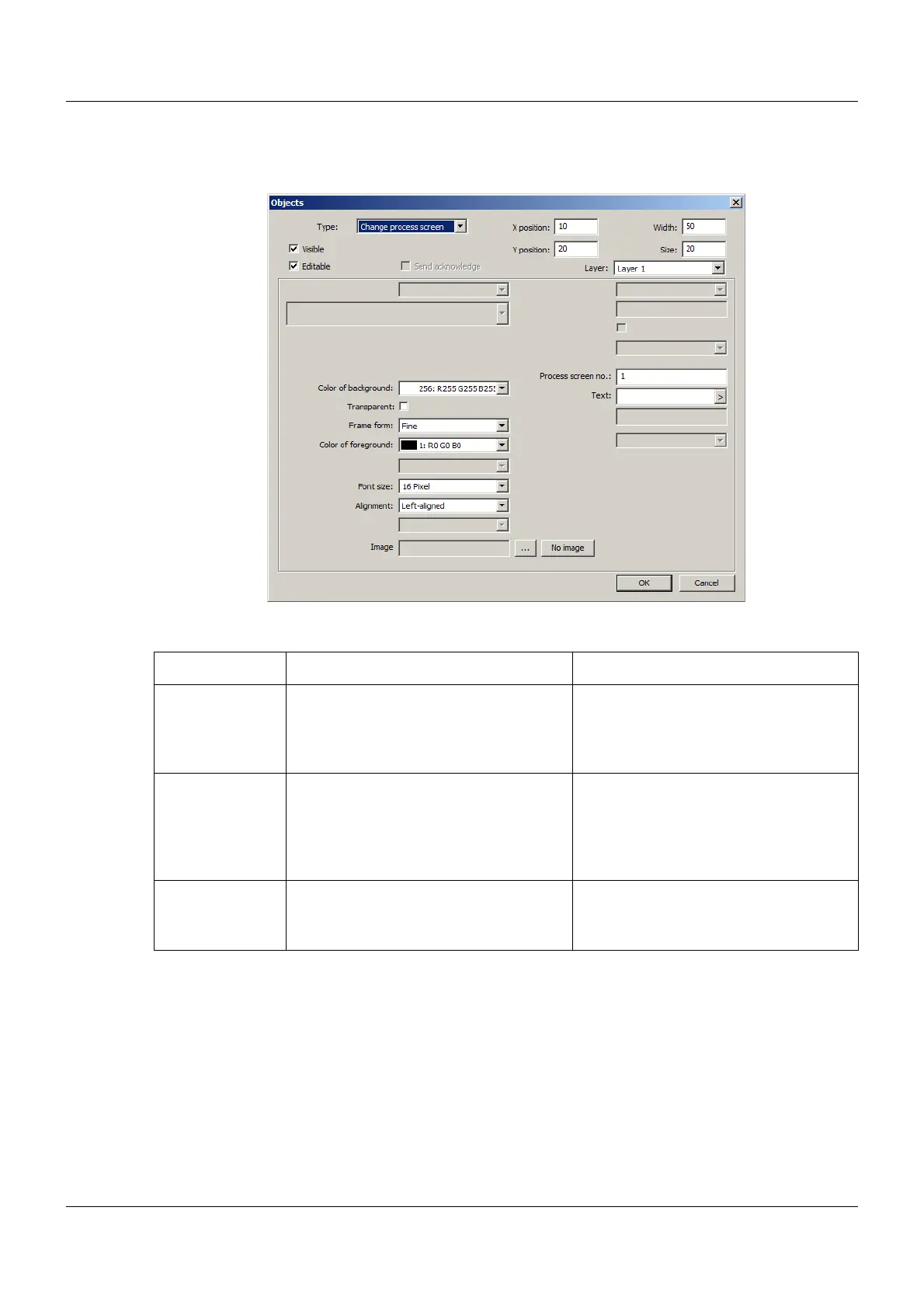 Change process screen