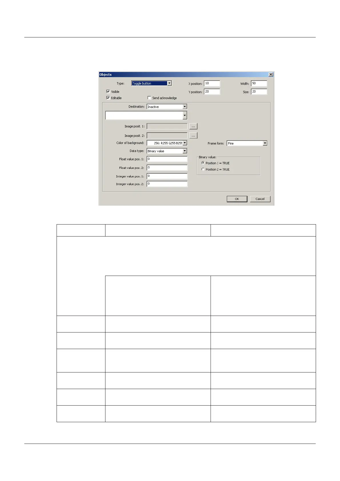 Binary value Select which setting corresponds to the