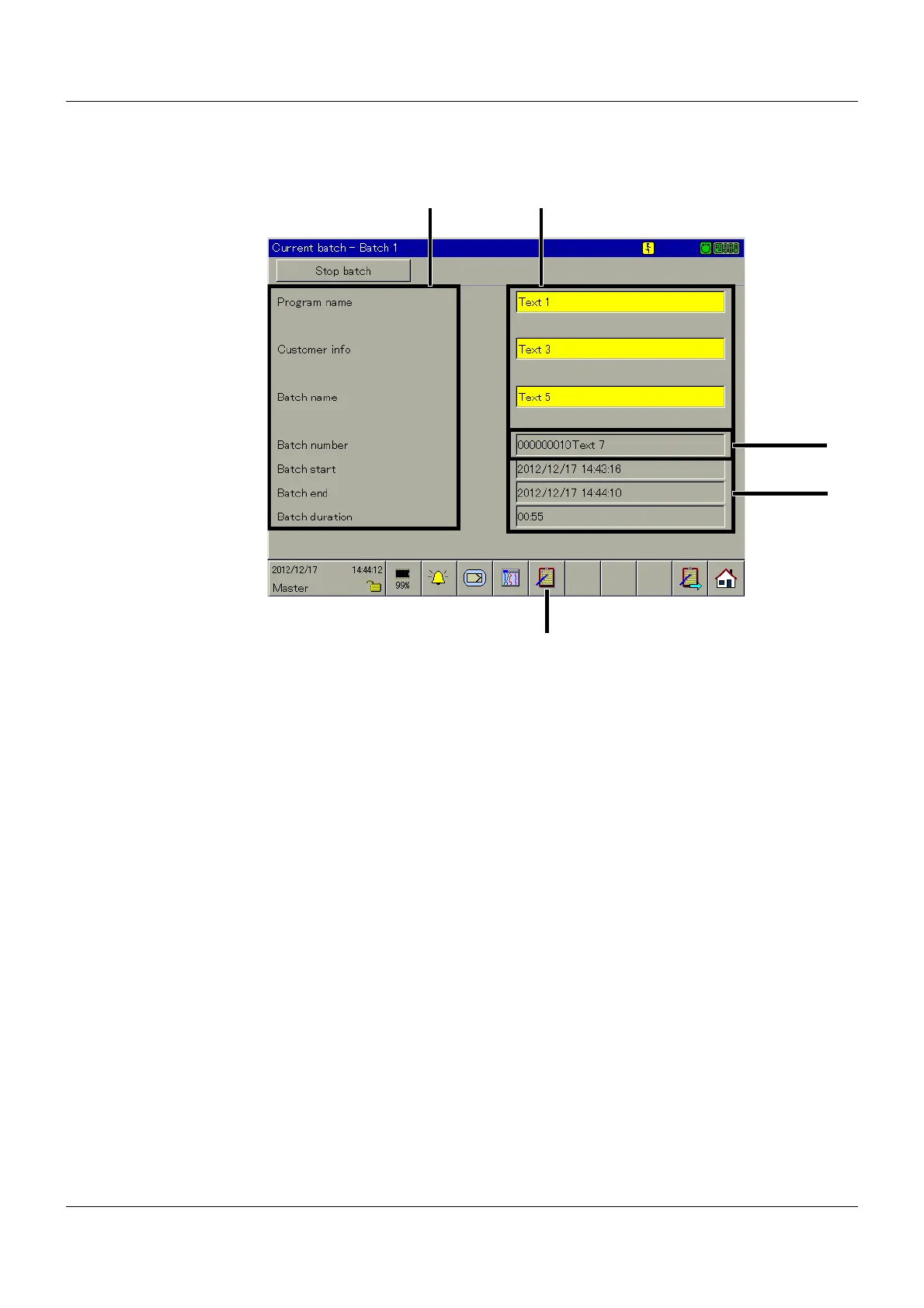ONFIGURATION > HMI > BATCHES/PLANTS > BATCH 1 TO 9 > BATCH INFO 1 TO 10 > TEXT