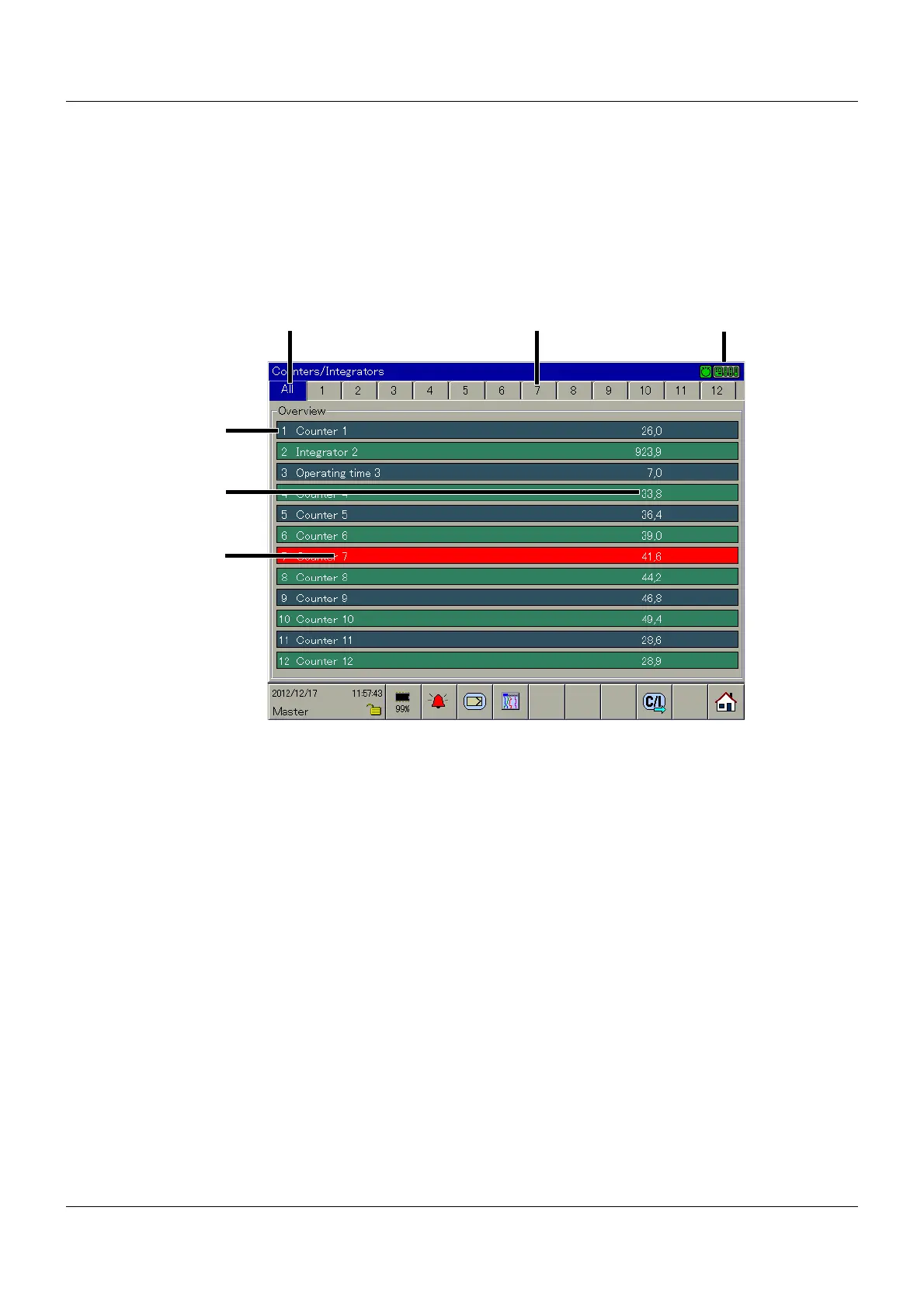 By touching the respective tab, the user can display 12 counters/integrators in a joint overview.