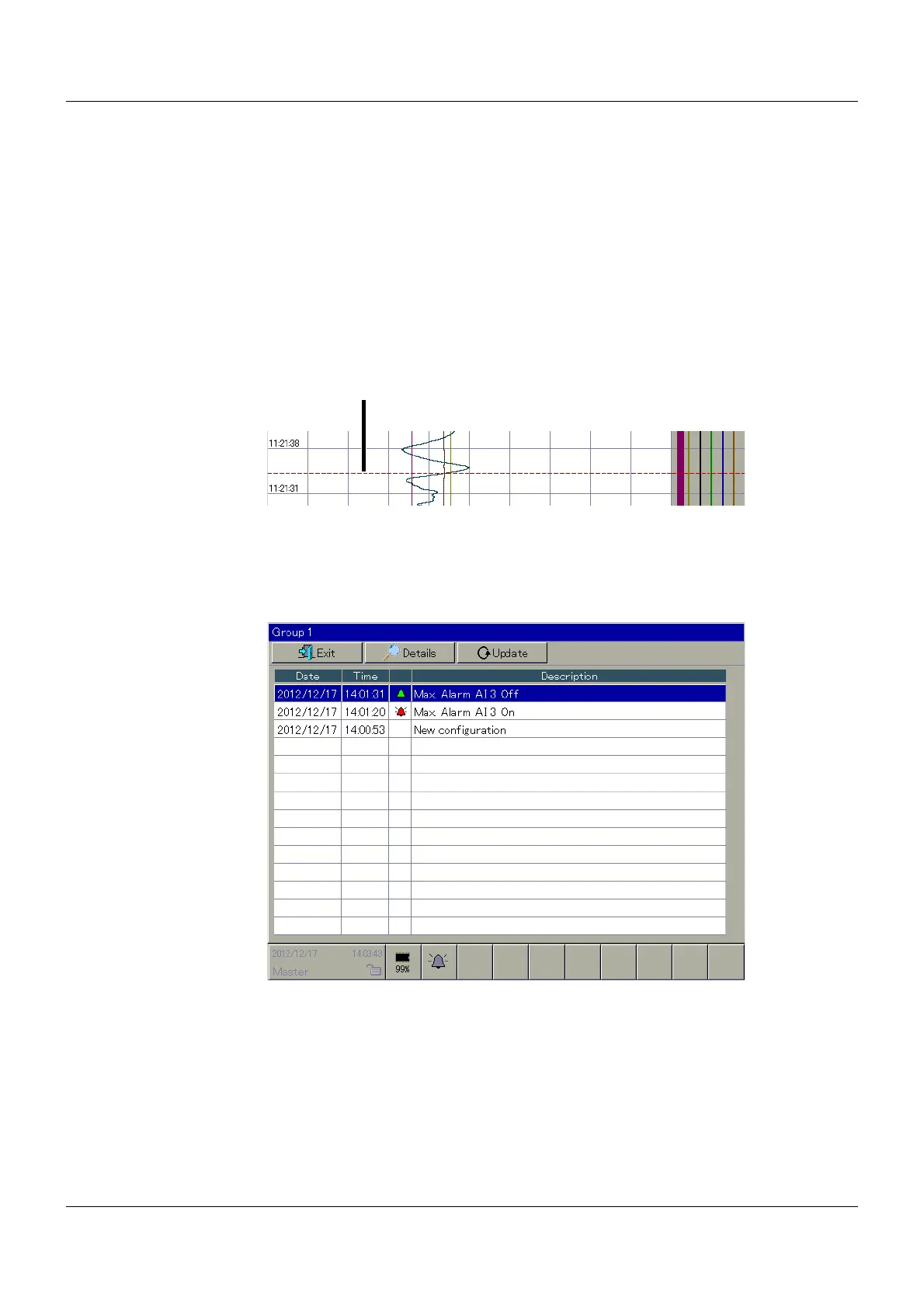 If the "Alarm and event lists" function is selected from a memory display, the system displays