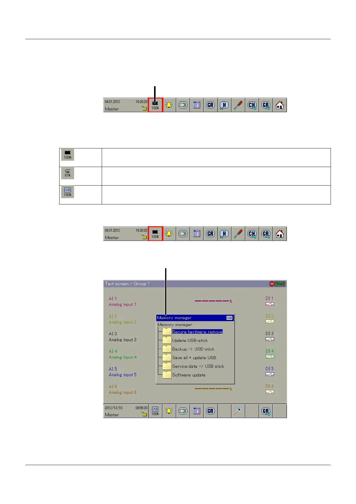 The memory manager contains functions for data exchange between the multifunction panel