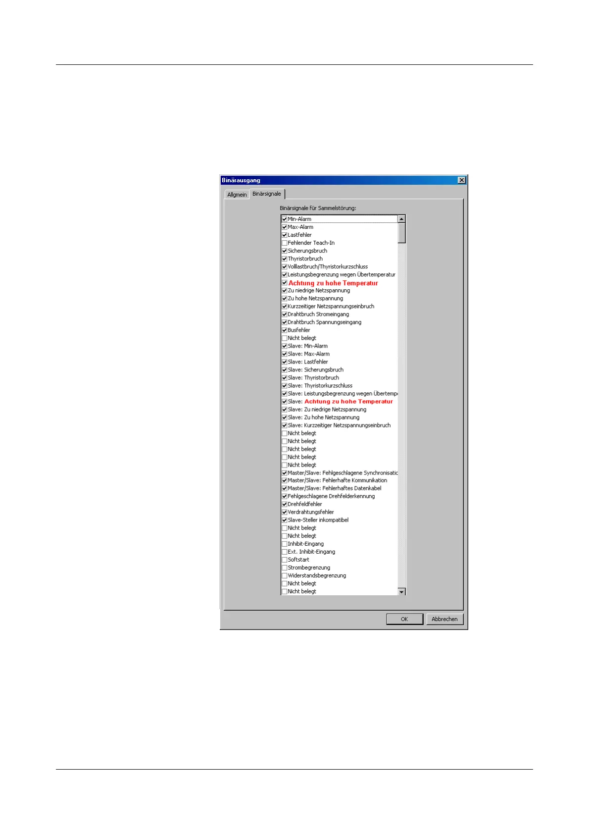 This alarm can switch a relay at the binary output.