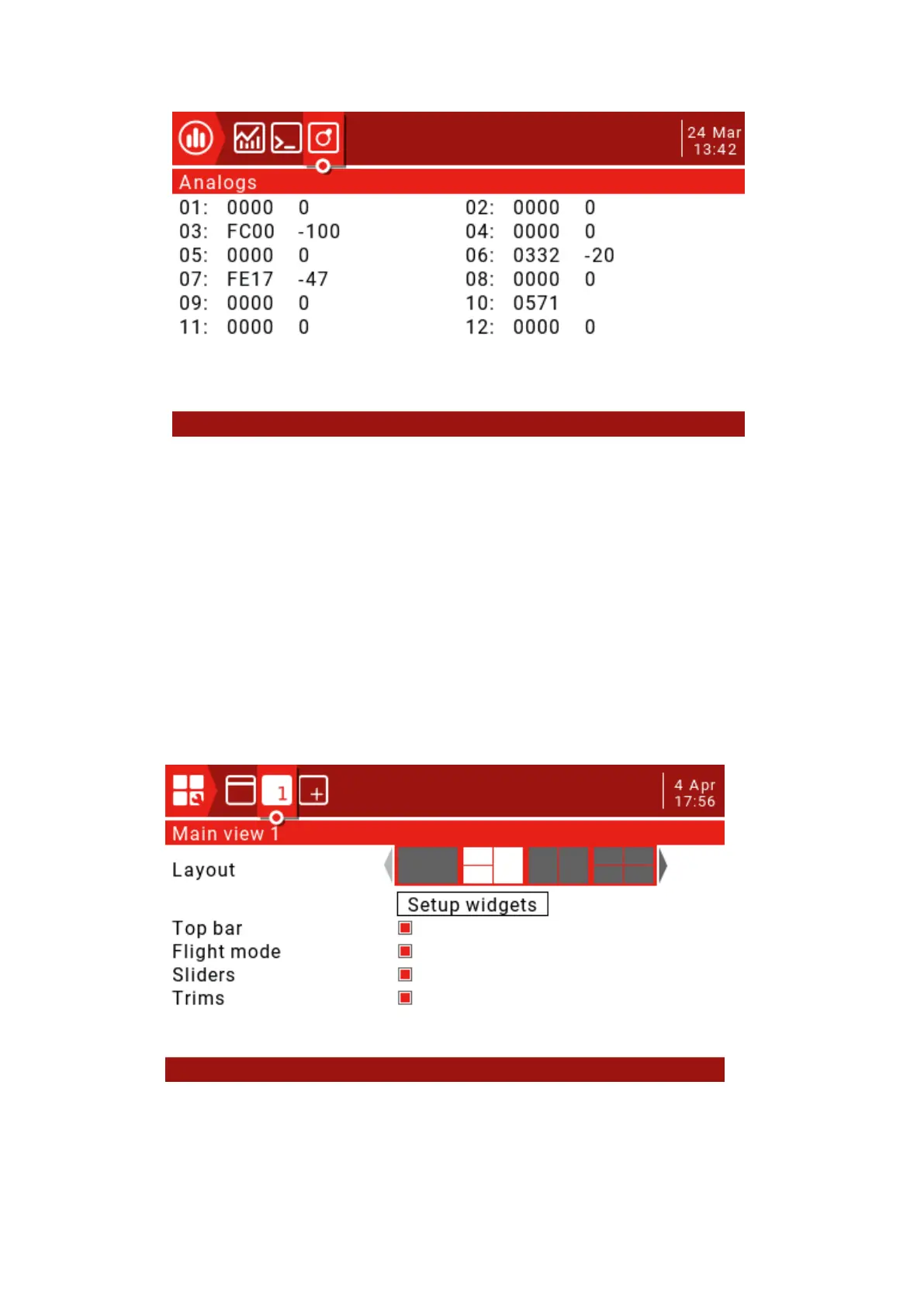 radio information and all telemetry. Five different layout options can be selected between full