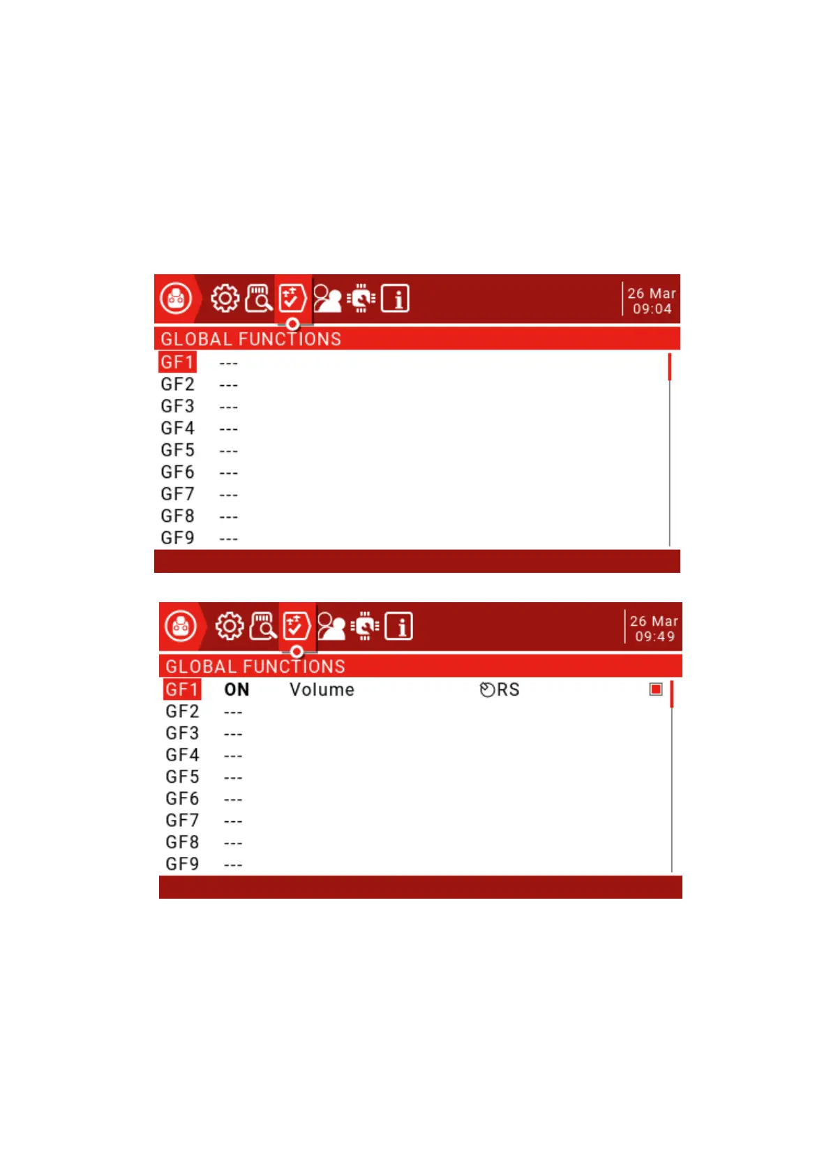 available for all modes, such as specific switches, potentiometers, sliders or settings,