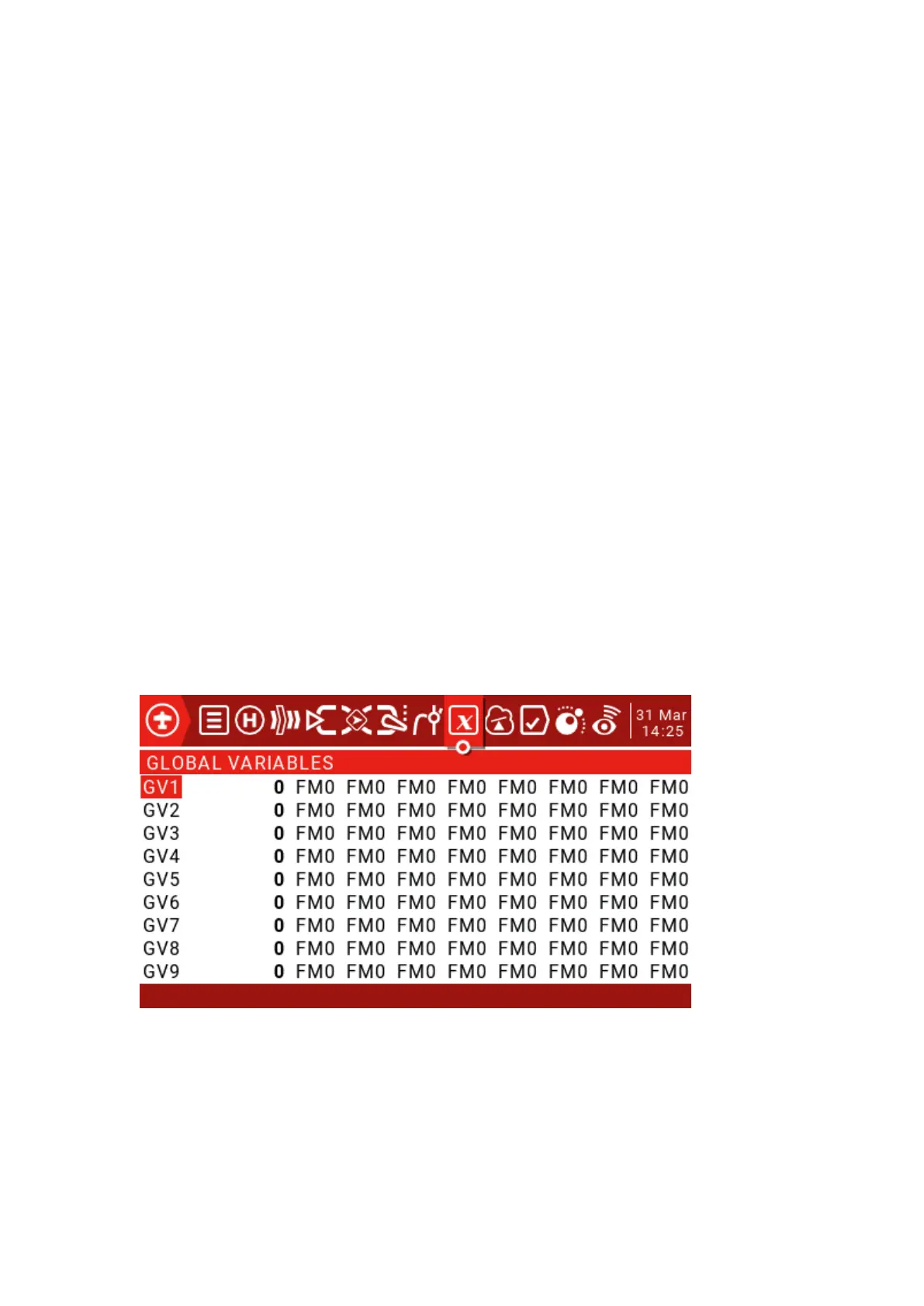different values for each flight mode. This greatly simplifies the mixing of the pages and makes