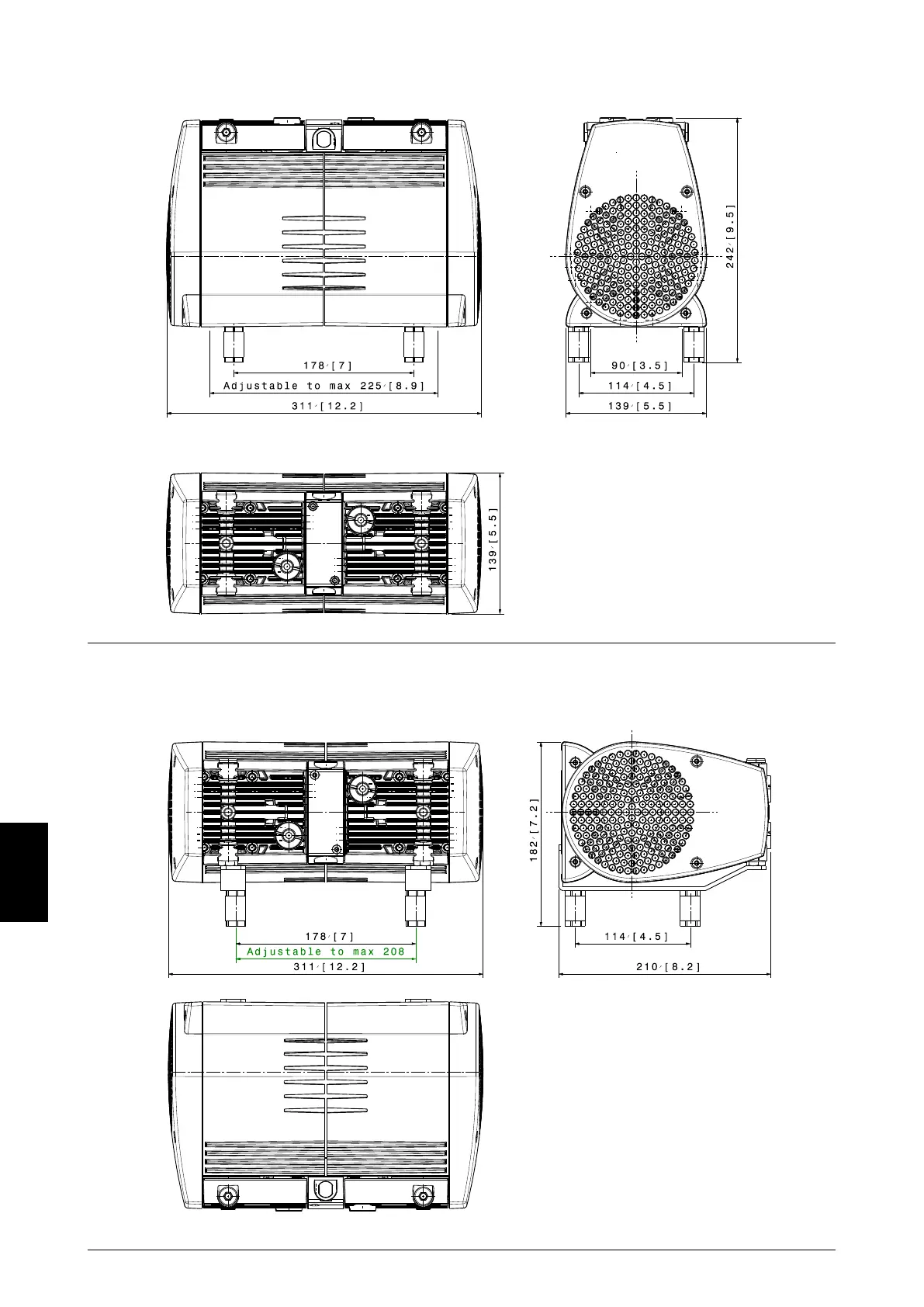 Dimensions - OF302, horizontally mounted