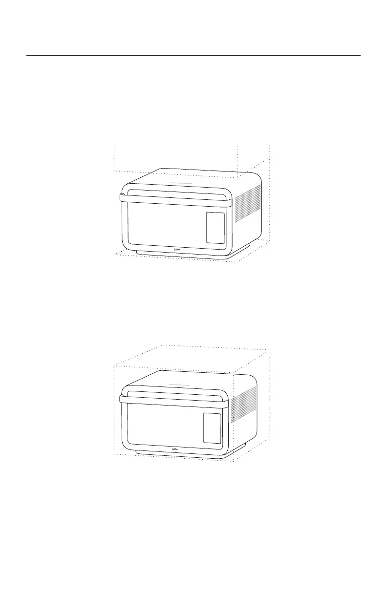 When positioned in an unenclosed space, the oven should have 8” of clearance