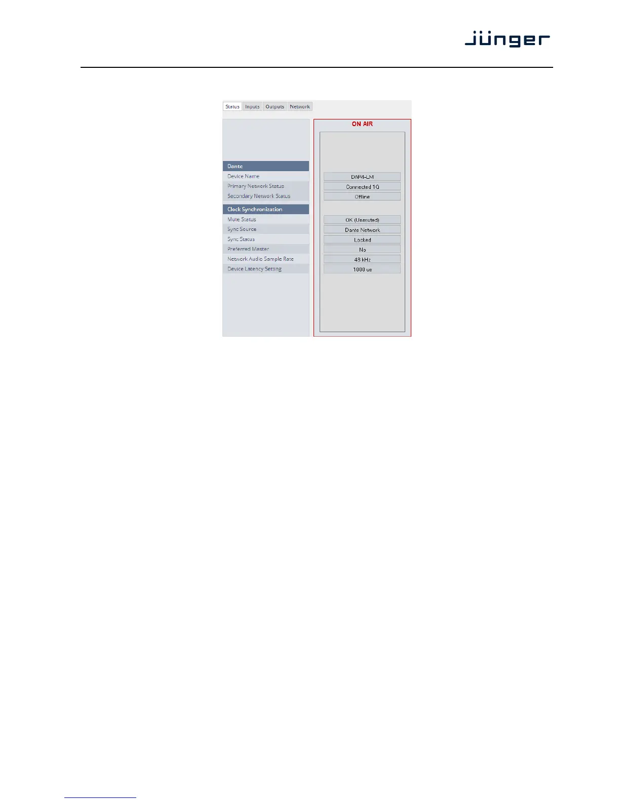 clock as the network clock master (whoever it is). It must be set to "Dante Network" if this module is to