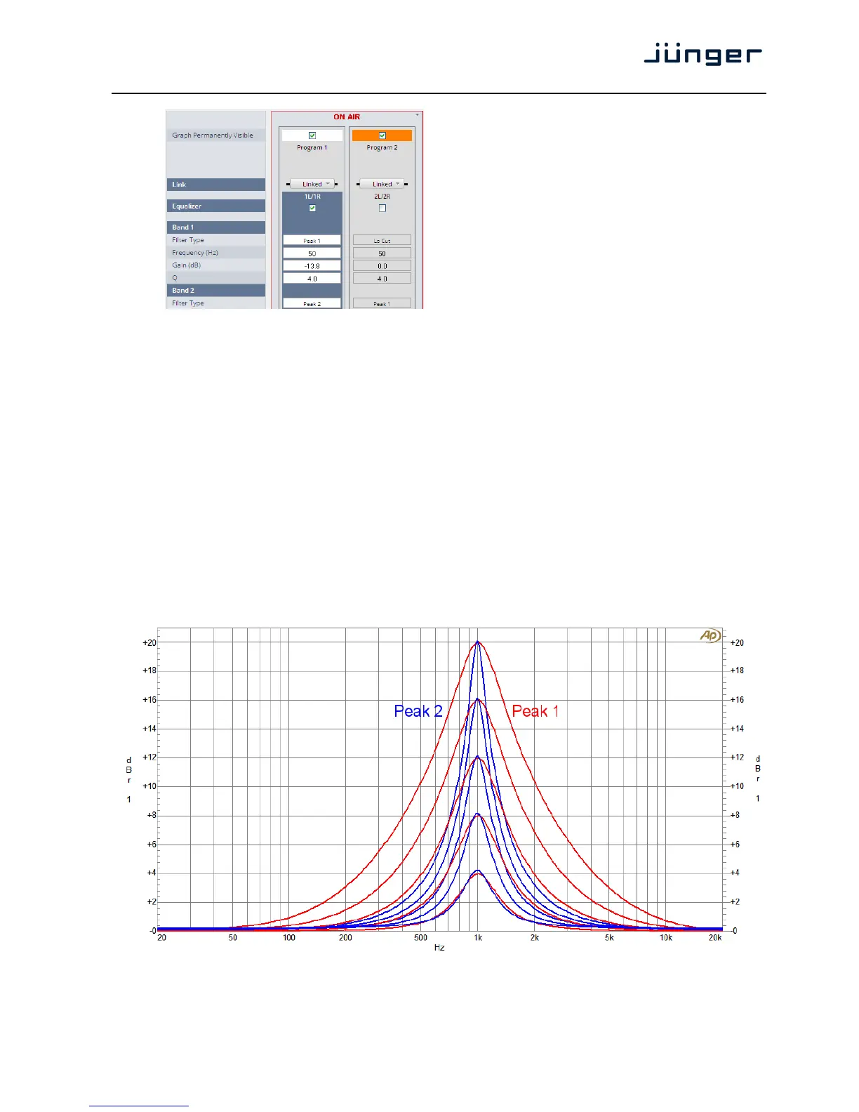 Peak 1: The bell curves of the Peak 1 filter features constant quality (Q) over gain.