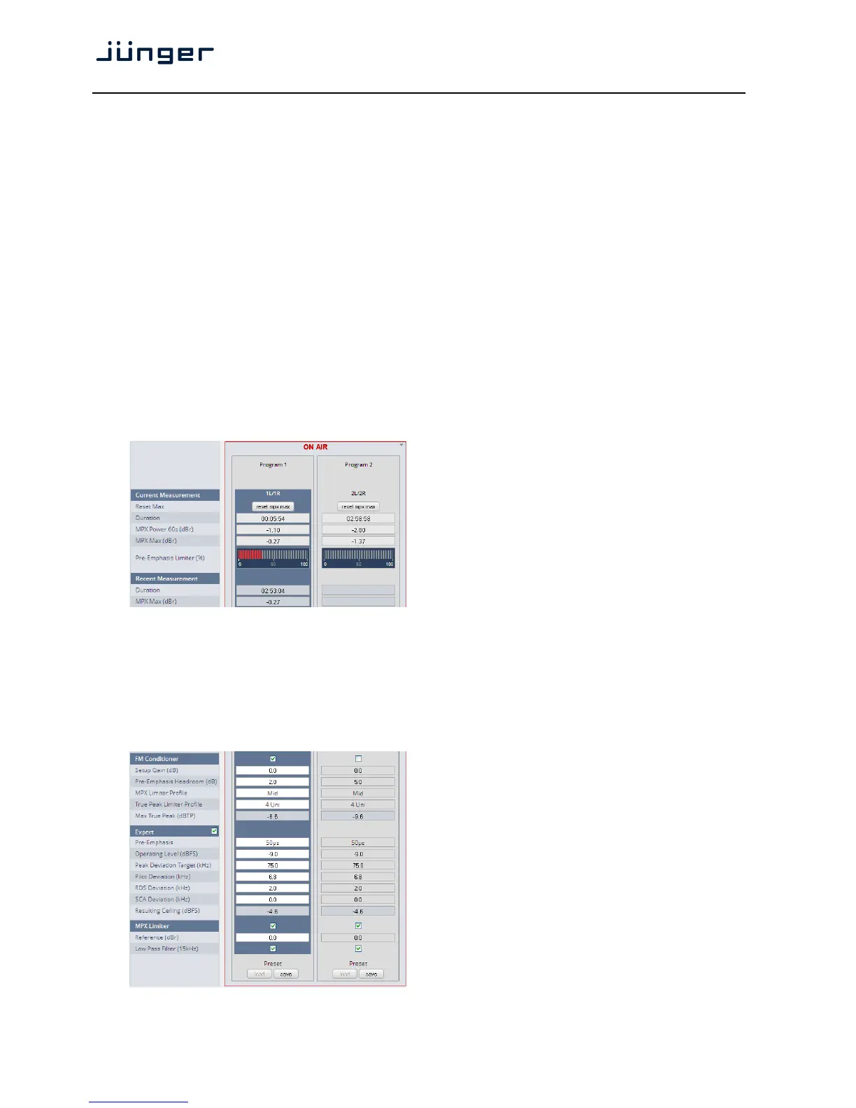 In the next section the operator can set the audio relevant parameters of the FM conditioning process: