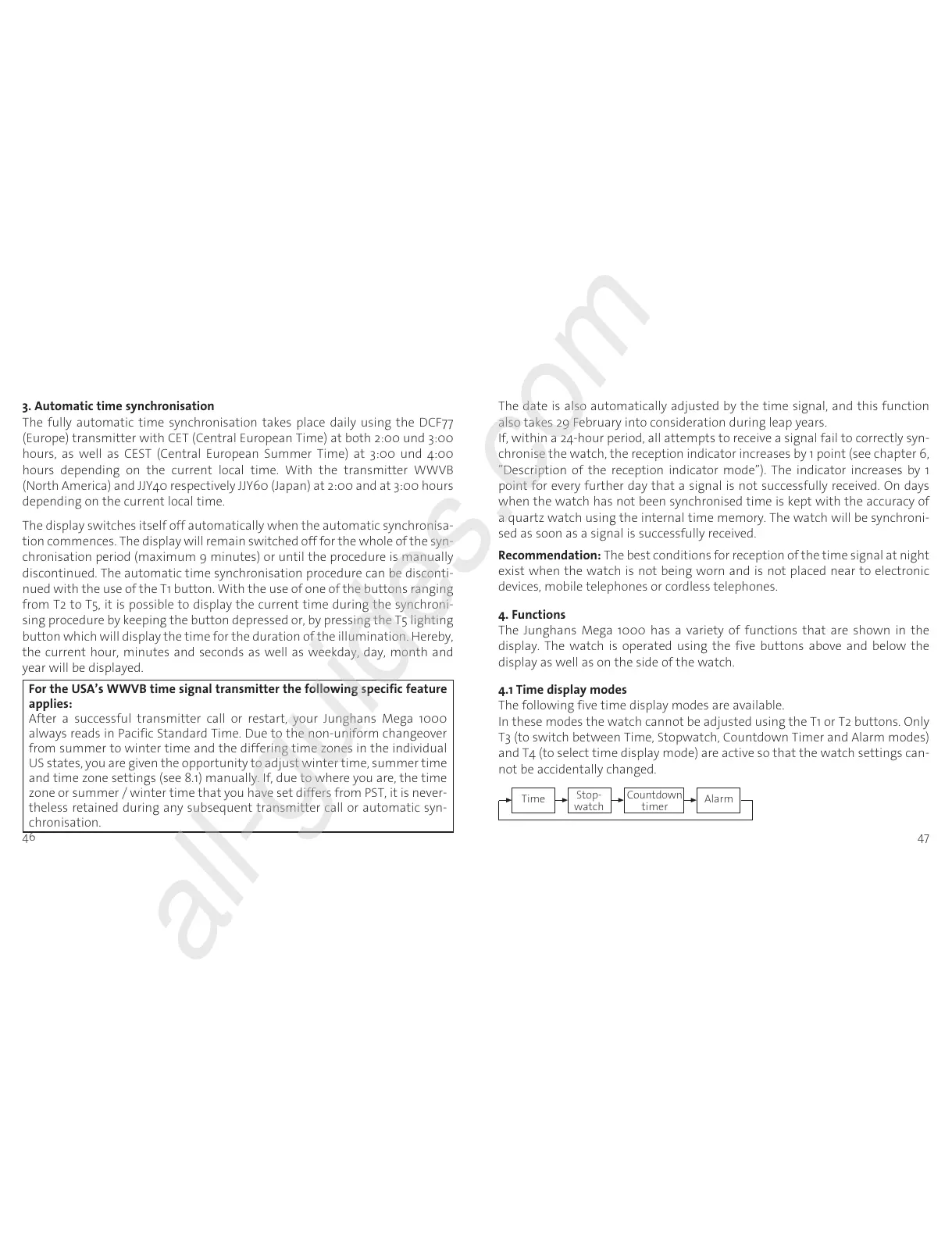 a quartz watch using the internal time memory. The watch will be synchroni-