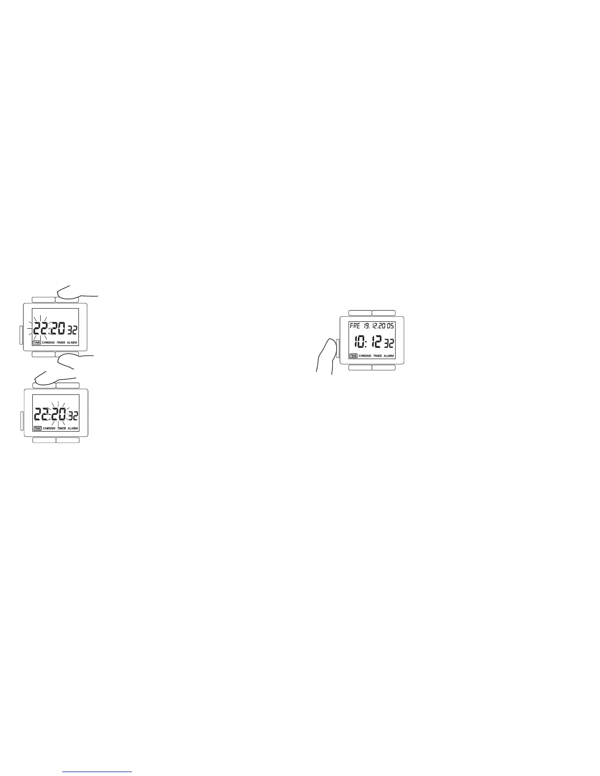 Ha az óra a kézi indítás módban van, a beállítandó paraméterek (óra, perc,