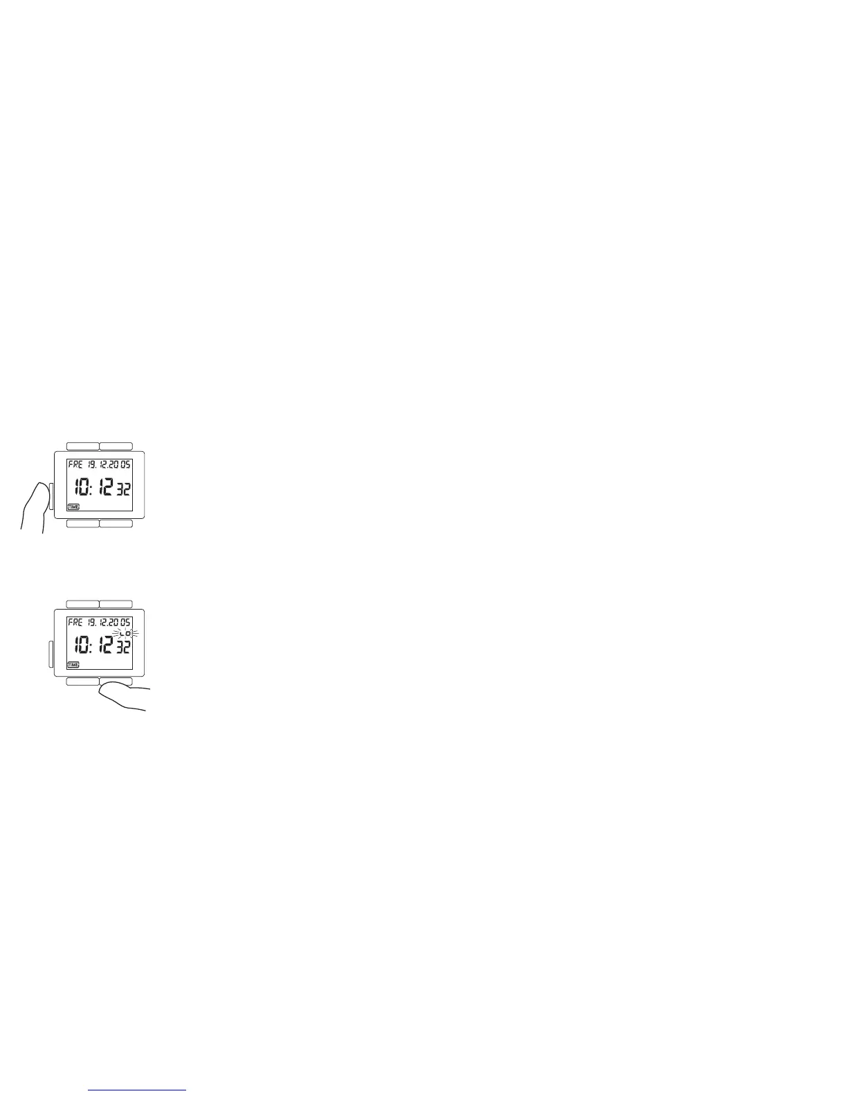 dikwijls op de toets T3 tot de actuele tijd in de display weergegeven wordt.