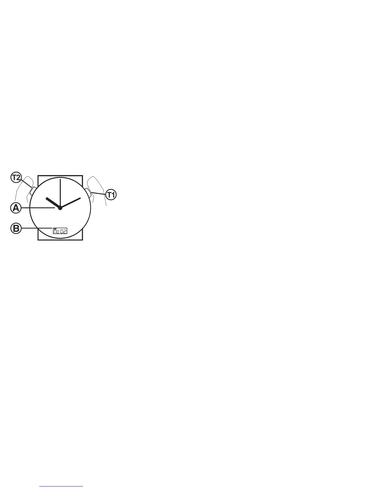 alternation with [Lo]). The second hand stops at 12 o’clock. By press-