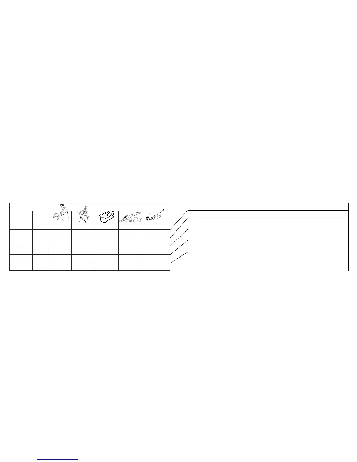 snorkelling, in the bath, swimming, washing the car, in the shower, water-