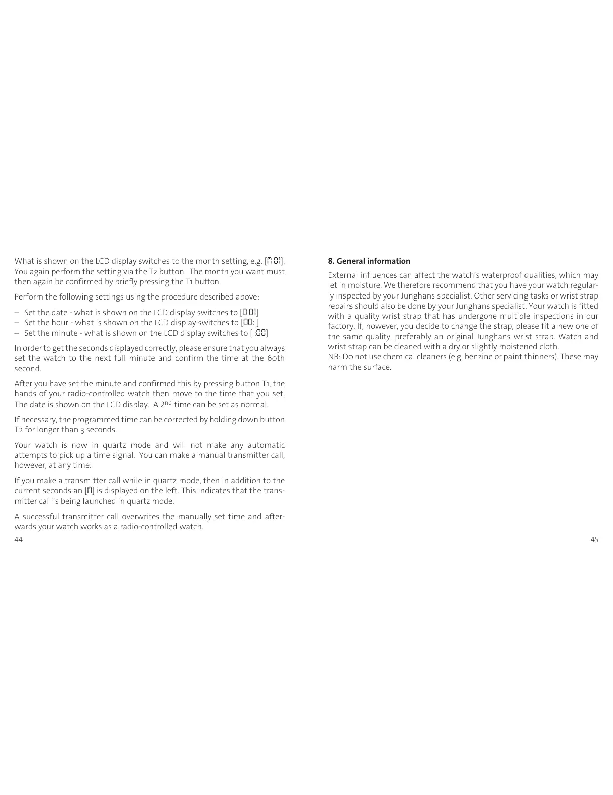 ly inspected by your Junghans specialist. Other servicing tasks or wrist strap