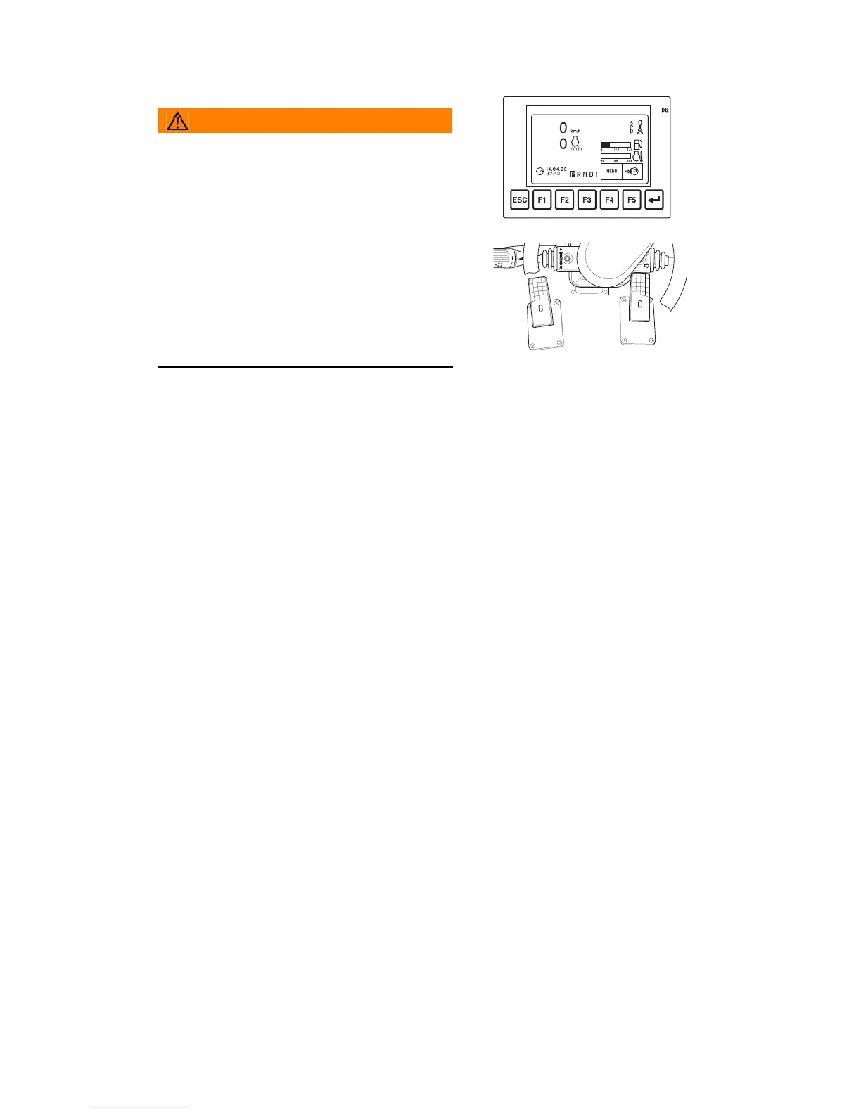 To allow the truck to move slowly, first step on the brake pedal (76). The press the