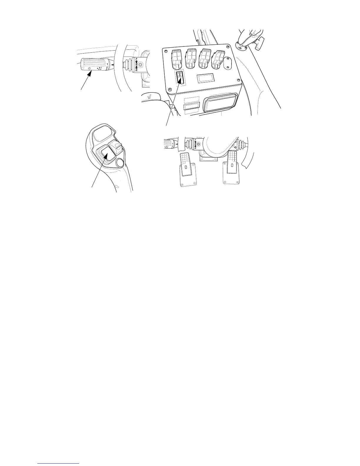 Press the pedal (76) to bring the truck to a standstill. Change the travel direction with