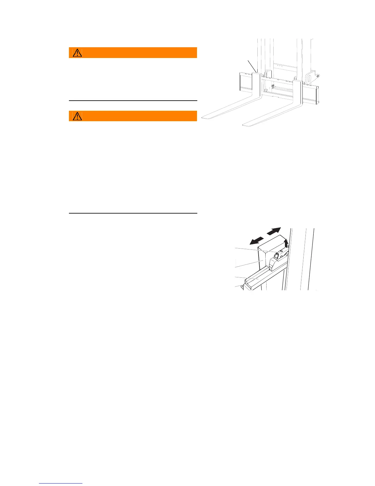 Lift the locking lever down (184) and move the forks until the locking pin engages
