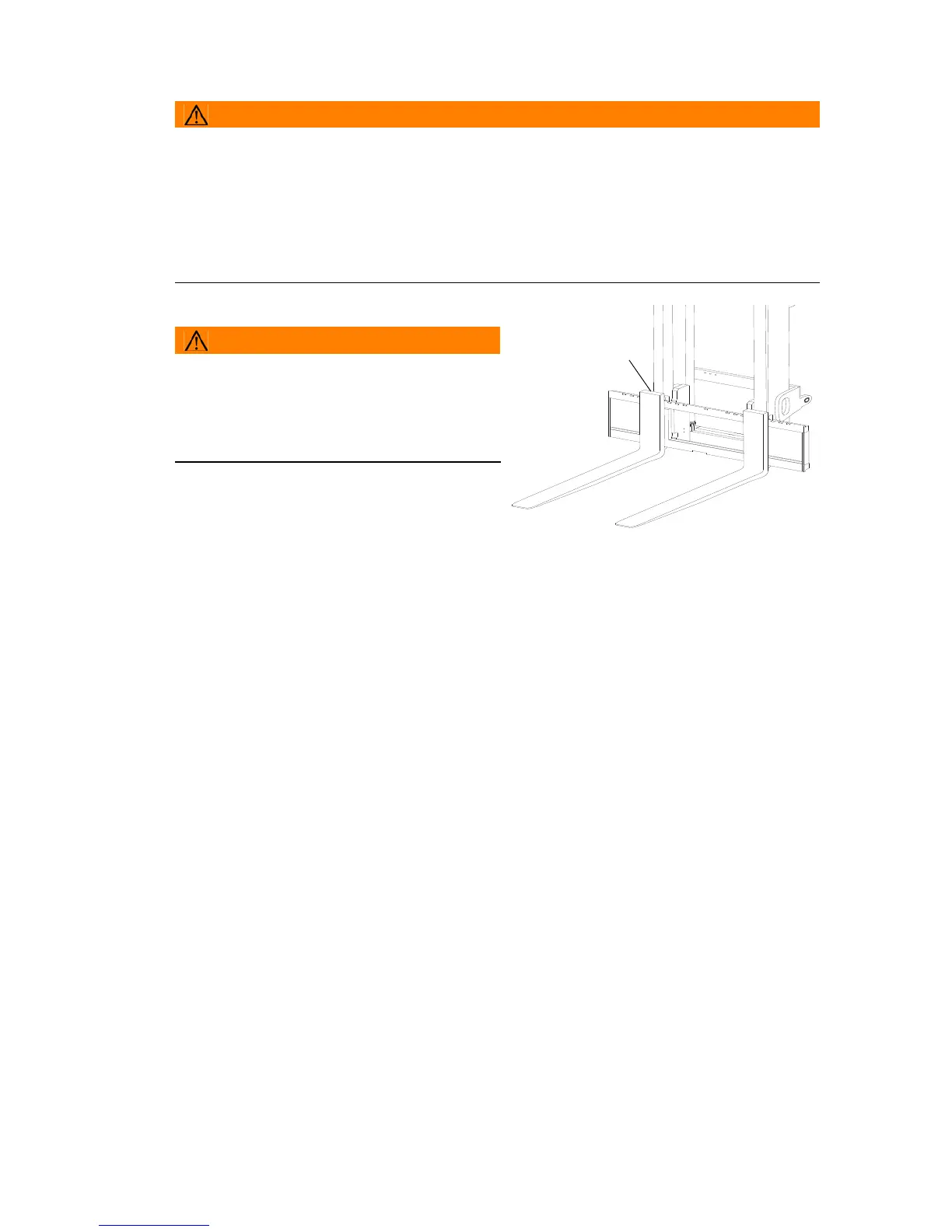 • Carefully push the fork tines to the centre of the fork carriage and remove them.