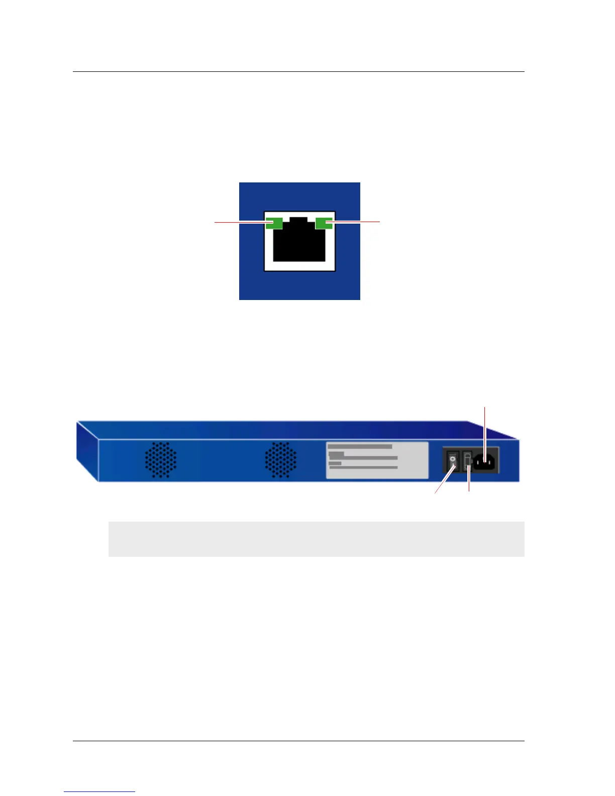 The figure below shows the rear panel of a NetScreen-200 Series device (with an AC