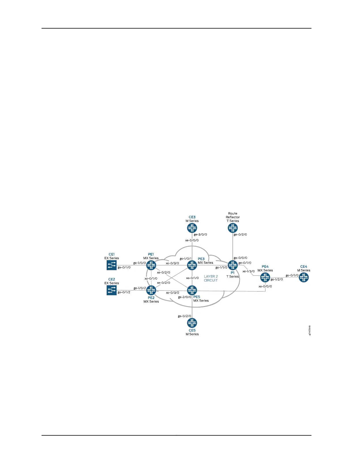 Four MX Series 3D Universal Edge Routers for Routers PE1, PE2, PE3, and PE4